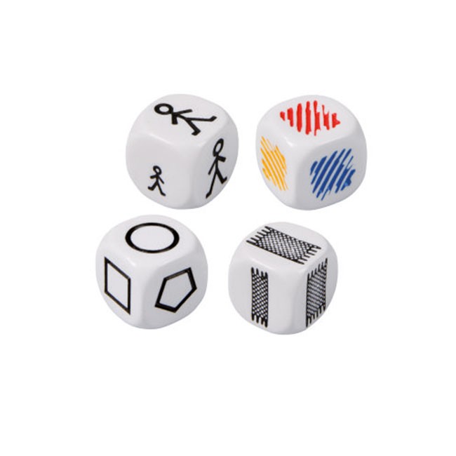 4 hracie kocky – farby, geometrické tvary, veľkosť, hrúbka