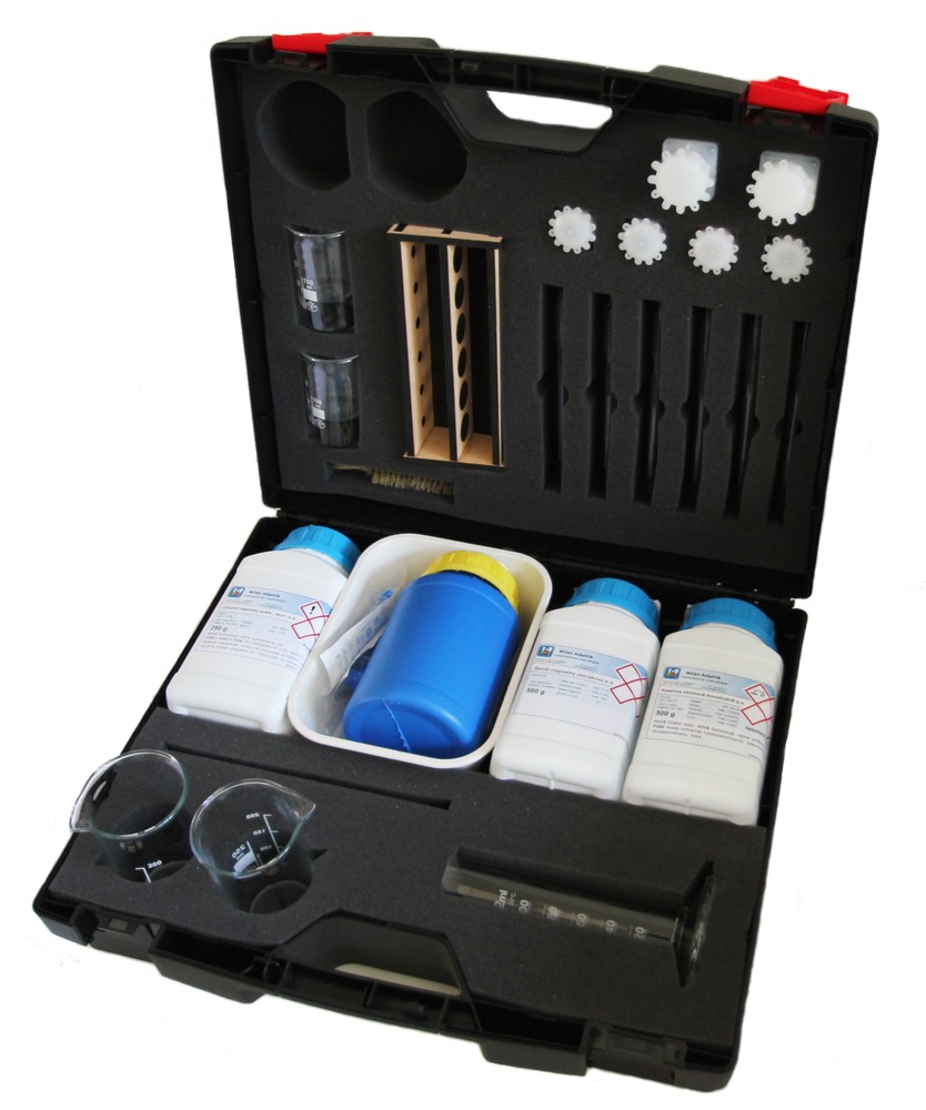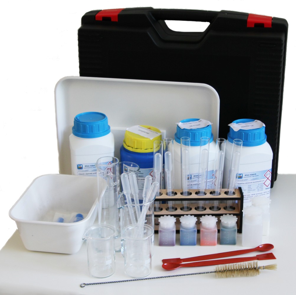 Jedinečná učebná pomôcka, vyrobená na mieru pre malých objaviteľov a výskumníkov. Kufrík obsahuje základné laboratórne vybavenie a spotrebný materiál pre vykonanie minimálne 15 bezpečných pokusov. Obsah kufríka: 6x kadičky, 1x odmerný valec, 2x lyžičky, 10x pipetky, 2x striekačky, 2x misky, 6x skúmavky, 10x filtračné papiere, 1x kefka, 1x stojan na skúmavky, chemikálie.