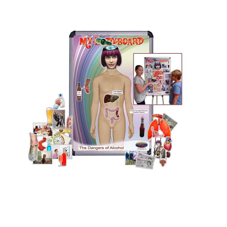 Inovatívna hra, ktorá obsahuje magnetickú tabuľu (90 x 60 cm), 60 magnetických obrázkov a textových popisov v AJ, ktoré predstavujú riziká alkoholizmu. Hra obsahuje učiteľskú príručku. Tabuľu možno použiť aj pri hre Rizika fajčenia.
